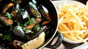 Er is keuze uit mosselen natuur, koninginnehapje en (gewone of vegetarische) ballekes in tomatensaus. Ook kinderporties zijn verkrijgbaar. Alles met frietjes of brood. Als dessert worden er verschillende taarten en chocomouskes aangeboden.