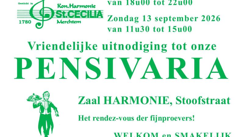 Harmonieorkest Concordiavrienden In Concert 25.04.2026, 20:00 tot 22:30 Aperitiefconcert Harmonie & Jeugdharmonie 26.04.2026, 10:30 tot 12:30 Aperitiefconcert instaporkest Band For the Future & BBQ 10.05.2026, 11:00 tot 12:30 Play-in 30.05.2026, 10:00 tot 21:00 Berlaarse concertnamiddag 2026 31.05.2026, 14:30 tot 18:00 Instrumentenvoorstelling muziekschool 5.06.2026, 19:00 tot 21:00 ZOMERKLANKEN van KF DE TOONKUNST 28.06.2026, 11:30 tot 12:30 Openingsconcert Merchtem-kermis 15.08.2026, 19:00 tot 20:30 Jaarmarktconcert 18.08.2026, 14:30 tot 15:30 Mossel-en Steakdagen 12.09.2026, 17:00 - 13.09.2026, 19:00 Pensivaria 12.09.2026, 18:00 - 13.09.2026, 15:00 BERG IN CONCERT 17.10.2026, 20:00 tot 23:00 Jeugdorkestenfestival ism Vlamo 14.11.2026, 10:00 tot 19:00 Jubileumconcert 14.11.2026, 19:30 - 15.11.2026, 23:00 Paginering Vorige pagina ‹ Vorige 3