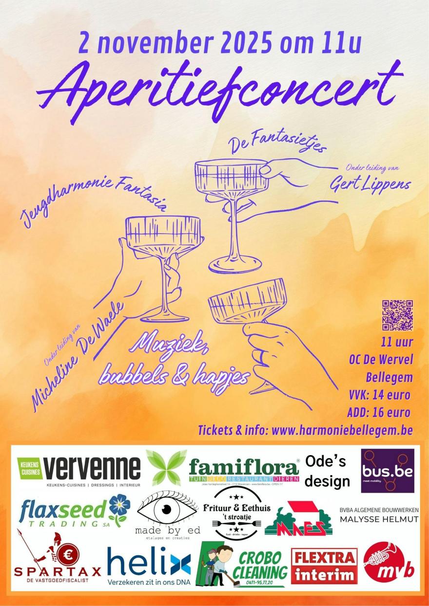 We nodigen jullie graag uit voor het Aperitiefconcert van Jeugdharmonie Fantasia & De Fantasietjes op zondag 2 november!