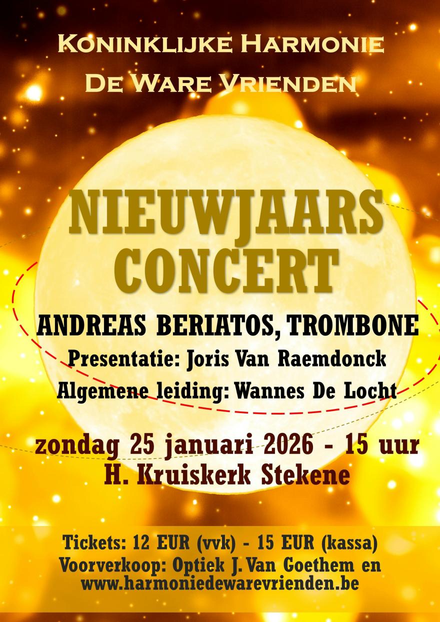 Voor ons 11e Nieuwjaarsconcert trekken we dit jaar over de grote plas, naar het Amerikaanse continent. Onder leiding van onze nieuwe dirigent Wannes De Locht brengen we opnieuw een gevarieerd repertoire van verrassende muziekstukken. De harmonie nodigde het jonge Griekse talent Andreas Beriatos op trombone uit als gastsolist.