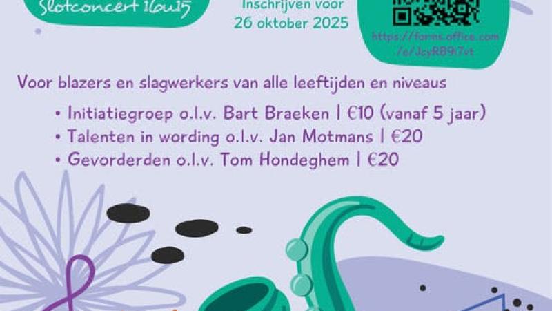 aperitiefconcert 2.11.2025, 10:30 tot 12:00 Aperitiefconcert Fantasia 2.11.2025, 11:00 tot 13:00 Canto de los Muertos 2.11.2025, 16:00 tot 17:30 Herfstconcert 7.11.2025, 20:00 tot 23:00 Herfstfeesten Fanfare SW: evaluatieconcerten i.s.m. VLAMO Antwerpen 8.11.2025, 12:30 tot 20:00 Remembranceconcert 8.11.2025, 20:00 tot 21:00 Play-In Haspengouw musiceert! 9.11.2025, 09:00 tot 17:00 11 november herdenking 11.11.2025 Jubileumconcert met als gastvedette Barbara Dex 15.11.2025, 20:00 tot 23:59 Themaconcert 'Een muzikaal verhaal' 15.11.2025, 20:00 tot 23:00 The Time Traveler's Music Box 15.11.2025, 20:00 tot 23:00 Muzikale rondgang KHE Brakel 16.11.2025 DUBBEL CONCERT BIG BAND WAESIANA - BIG BAND EKEREN 16.11.2025, 15:00 tot 17:00 DUBBEL CONCERT BIG BAND WAESIANA - BIG BAND EKEREN 16.11.2025, 15:00 tot 17:00 Slotconcert Drumtopia 16.11.2025, 18:30 tot 19:30 Brassed Off 22.11.2025, 20:00 - 29.11.2025, 23:00 Herfstconcert Koninklijke Harmonie De Ware Vrienden Oppuurs 22.11.2025, 20:00 tot 23:00 Sinterklaasfeest VZW De Burgersgilde 23.11.2025 Paginering Vorige pagina ‹ Vorige 2 Volgende pagina Volgende ›